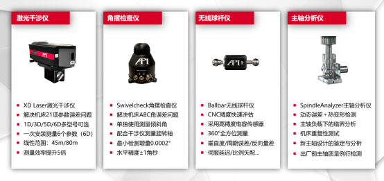 基于对机床误差的深入研究,以及近半个世纪的技术积淀,造就了API MTC(Machine Tool Calibration)机床检测专家级全面解决方案;方案由多种高效机床检测校准设备组成: